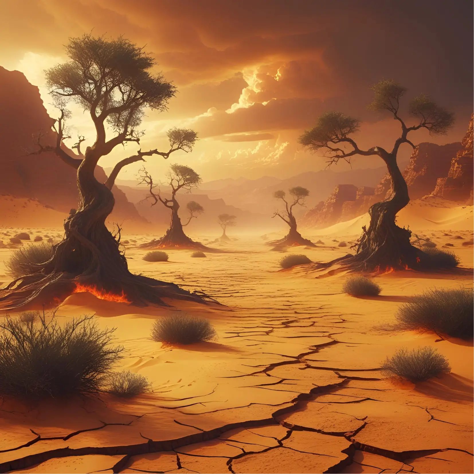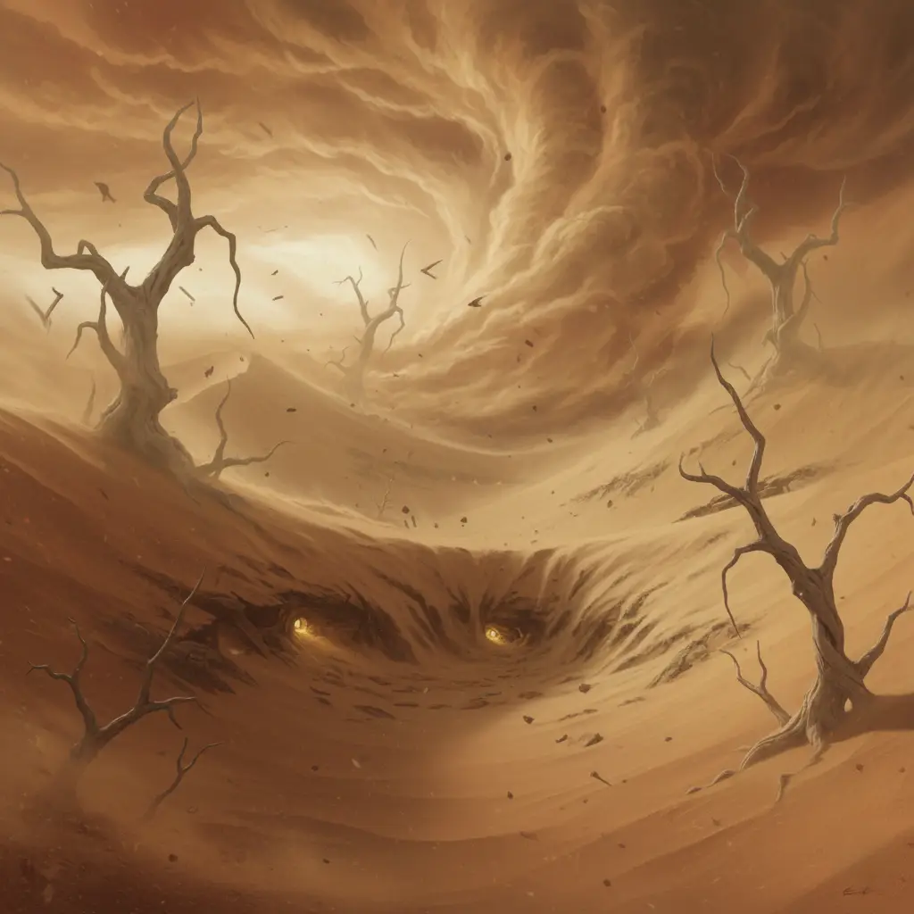 Altın sarısı kum tepeleri, göğe uzanan kuru ağaç kalıntıları ve yıl boyu süren kum fırtınalarıyla tanınan Eruka Çölü, Eklopsi'nin en çorak ve en acımasız topraklarından biridir. Gündüzleri yakıcı bir güneşin, geceleri buz kesen bir ayazın hâkim olduğu bu çöl, yabancılar için tam anlamıyla bir ölüm tuzağıdır.