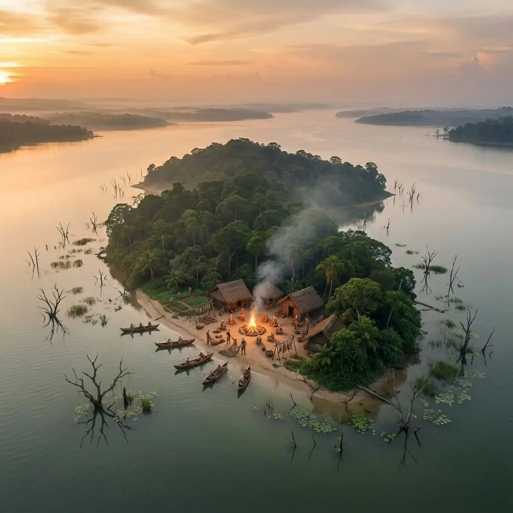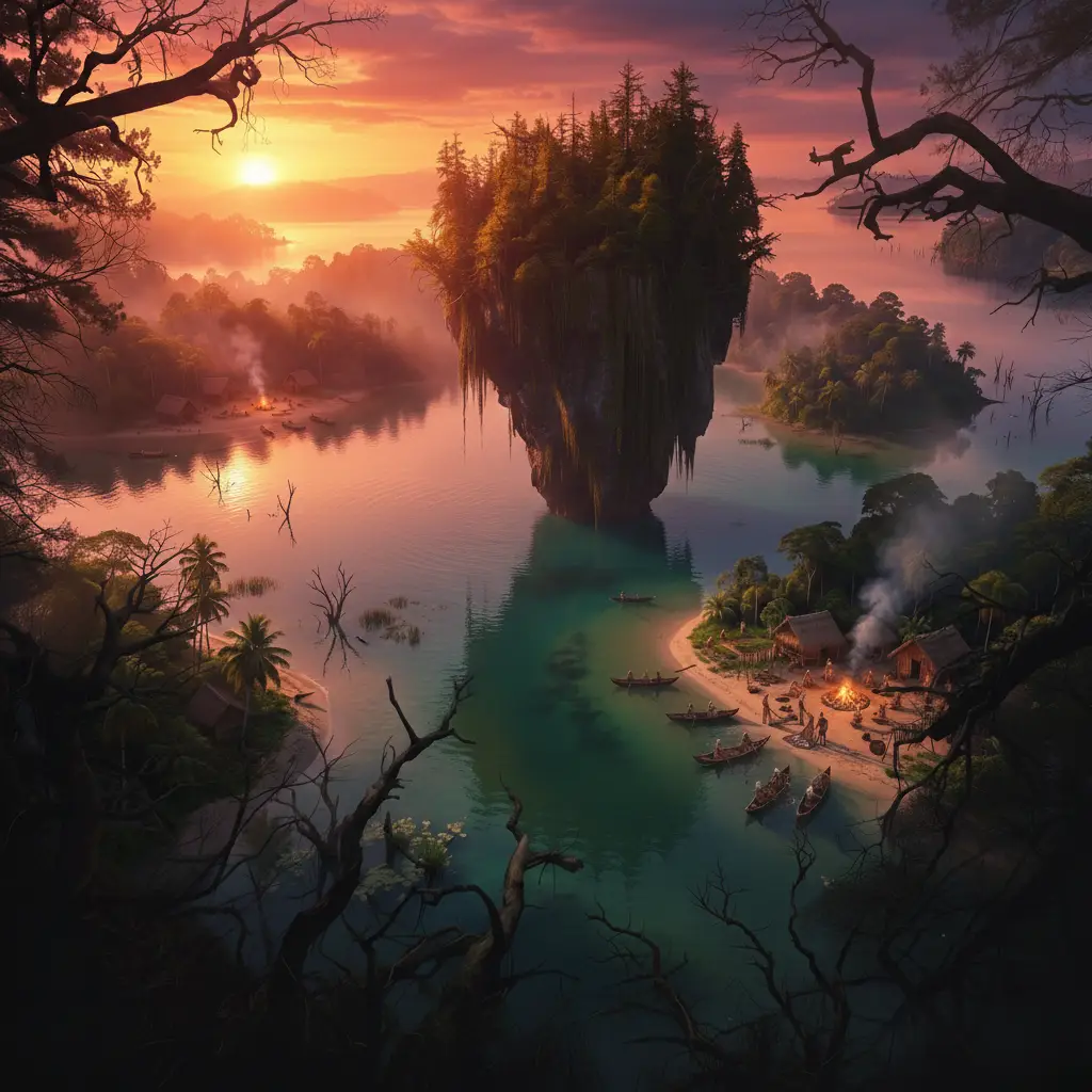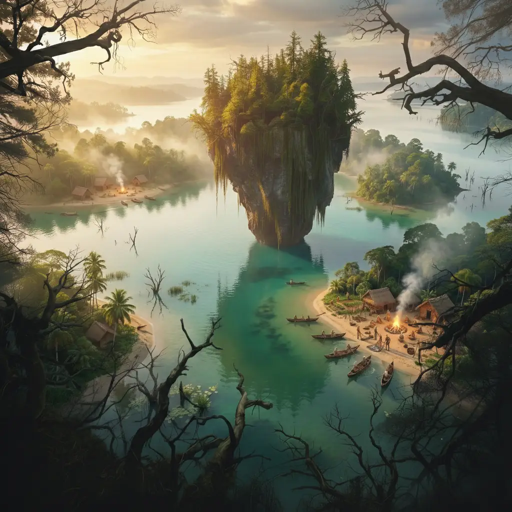 Kapsara Adası, gri-yeşil sularla çevrili geniş bir gölün ortasında yükselen gizemli bir kara parçasıdır. Kökeni, yıkıcı bir doğal afetin ardından sular altında kalan görkemli bir ormana dayanır. Bu nedenle ada, hâlâ geçmişin gölgelerini ve o kadim ormanın izlerini taşır.