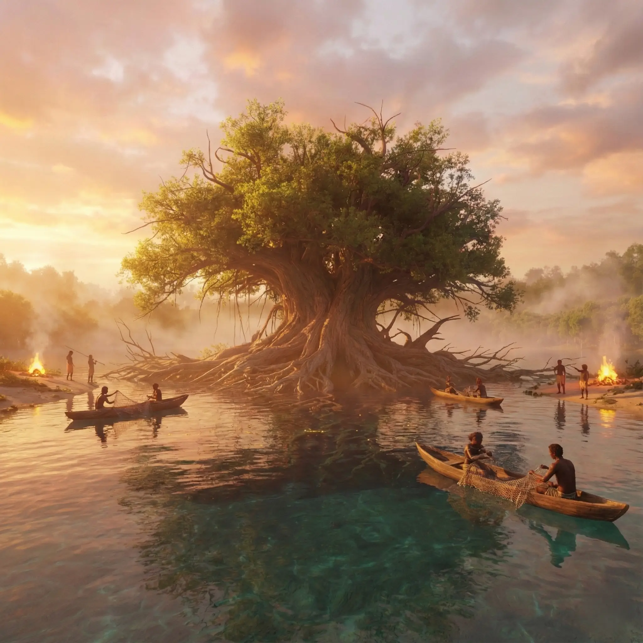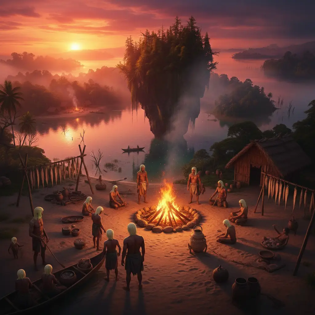 Gün batımında herkes ateşin etrafında toplanır; avlanan balıklar ve toplanan ürünler paylaşılır, ortak sofralarda yenir. Gölün sisli manzarası eşliğinde anlatılan hikâyeler ve söylenen şarkılar, Kaparaların birliğini ve aidiyetini pekiştirir.