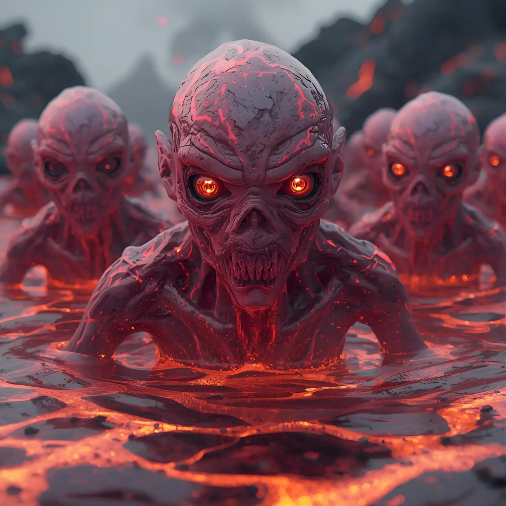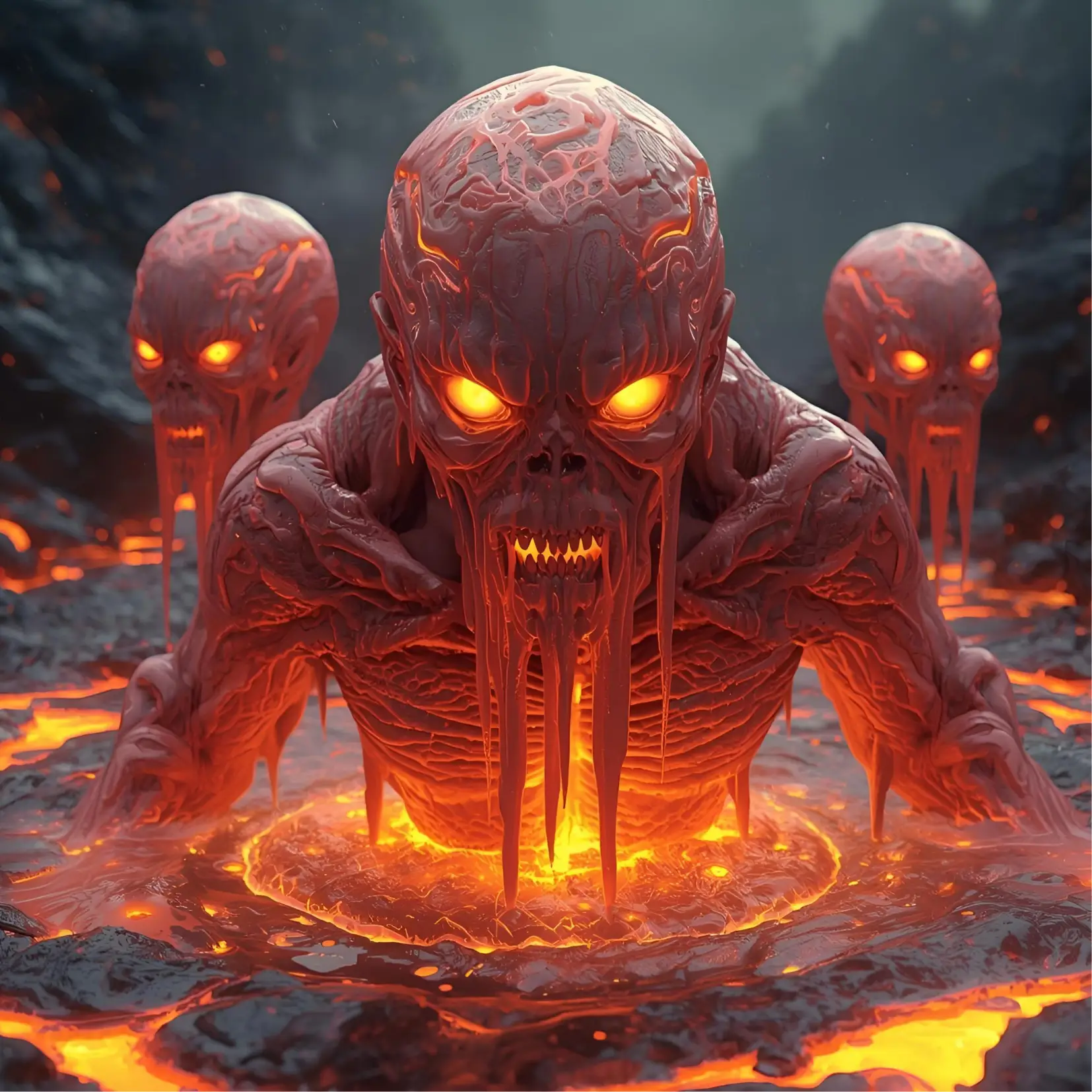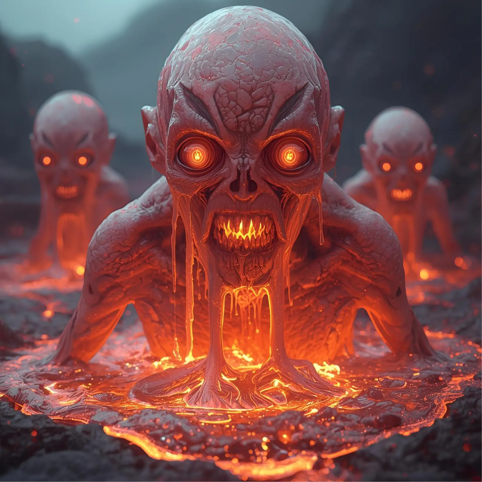 Volklar, adeta volkanik hiddetin vücut bulmuş hâlidir. Somon ve pembe tonlarındaki parlak bedenleri dalgalanan, canlı lav kütlelerini andırır; akışkan ve şekilsiz derileri bir magma parçasıymış gibi sürekli hareket eder. Yanardağın ateşini andıran gözleriyle karşısındakinin zihnini esir alabilir, bedenini felce uğratabilirler. Çığlıkları ise vadinin sessizliğini paramparça eden bir lanet gibi kulaklarda yankılanır; bu yalnızca fiziksel değil, aynı zamanda ruhsal bir saldırıdır. Onu işitenler derin bir korkuya ve zihinsel bir çöküşe sürüklenir.