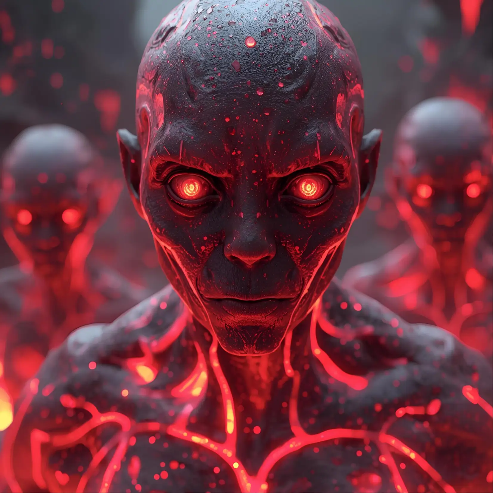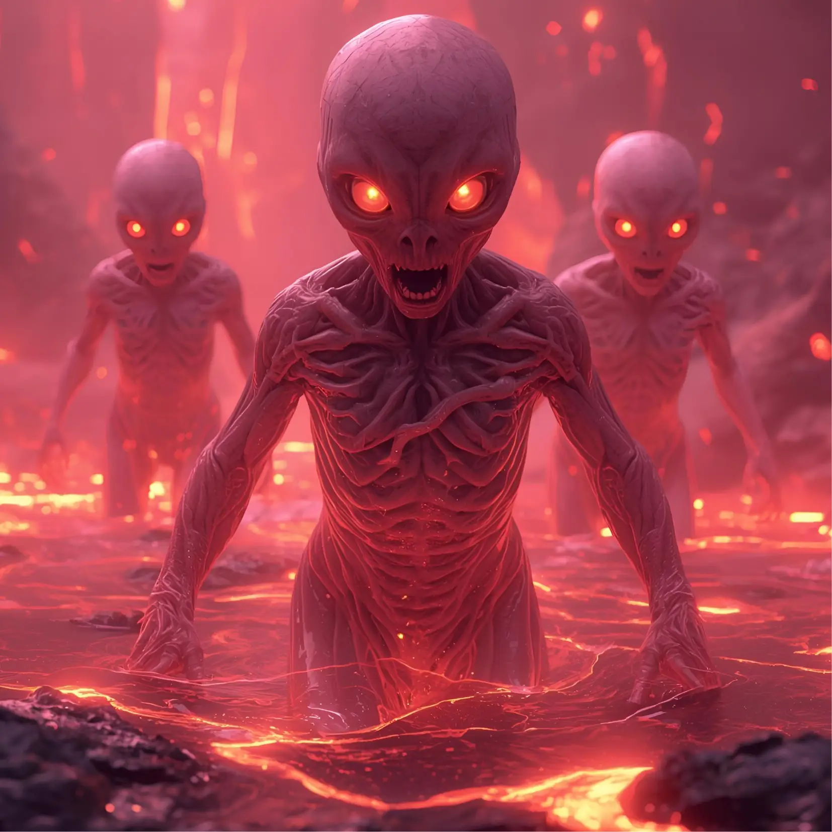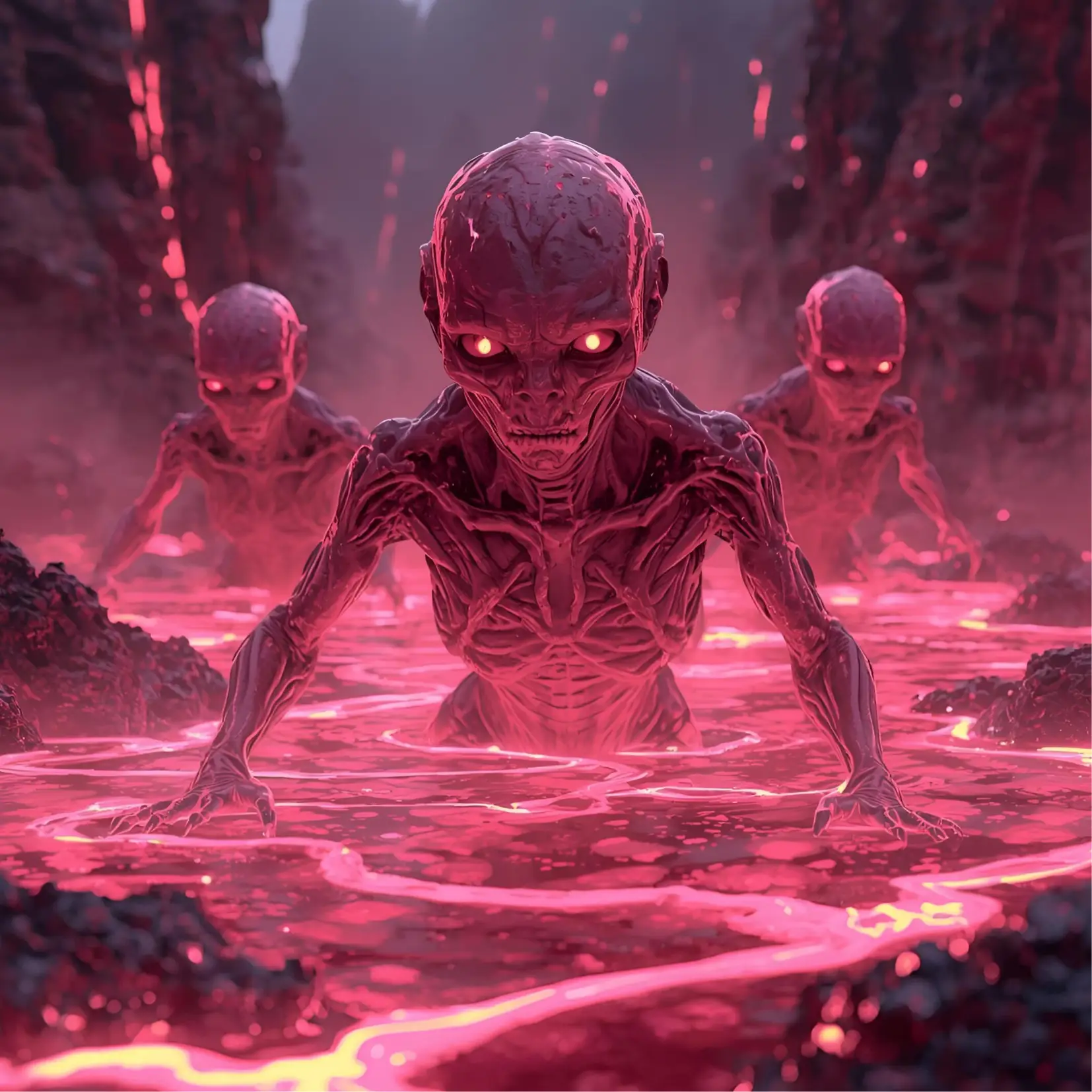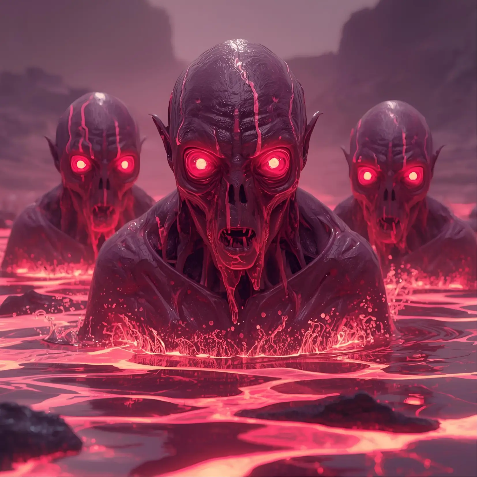 Volklar, adeta volkanik hiddetin vücut bulmuş hâlidir. Somon ve pembe tonlarındaki parlak bedenleri dalgalanan, canlı lav kütlelerini andırır; akışkan ve şekilsiz derileri bir magma parçasıymış gibi sürekli hareket eder. Yanardağın ateşini andıran gözleriyle karşısındakinin zihnini esir alabilir, bedenini felce uğratabilirler. Çığlıkları ise vadinin sessizliğini paramparça eden bir lanet gibi kulaklarda yankılanır; bu yalnızca fiziksel değil, aynı zamanda ruhsal bir saldırıdır. Onu işitenler derin bir korkuya ve zihinsel bir çöküşe sürüklenir.