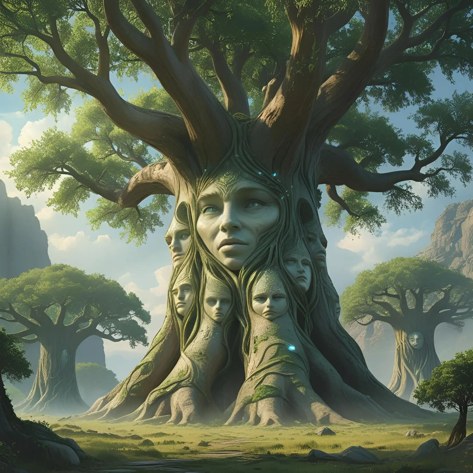 Aarav Ağaçları, Eklopsi’nin en kadim ve en kutsal varlıklarıdır. Koca gövdelerinde yalnızca yaşamı değil, “Aarav” olarak bilinen gezegen bilincini de taşırlar. Her biri gezegenin damarlarından yükselen bir anıt gibidir; kökleri toprağın derinliklerine ulaşıp gezegenin kalbini sararken, göğe uzanan dalları ışık ile karanlığı birbirine bağlar. Bu yönleriyle Aarav Ağaçları, Eklopsi’de yeryüzü ile gökyüzü; yaşam ile ruh arasındaki en eski ve en güçlü köprüler olarak görülürler.