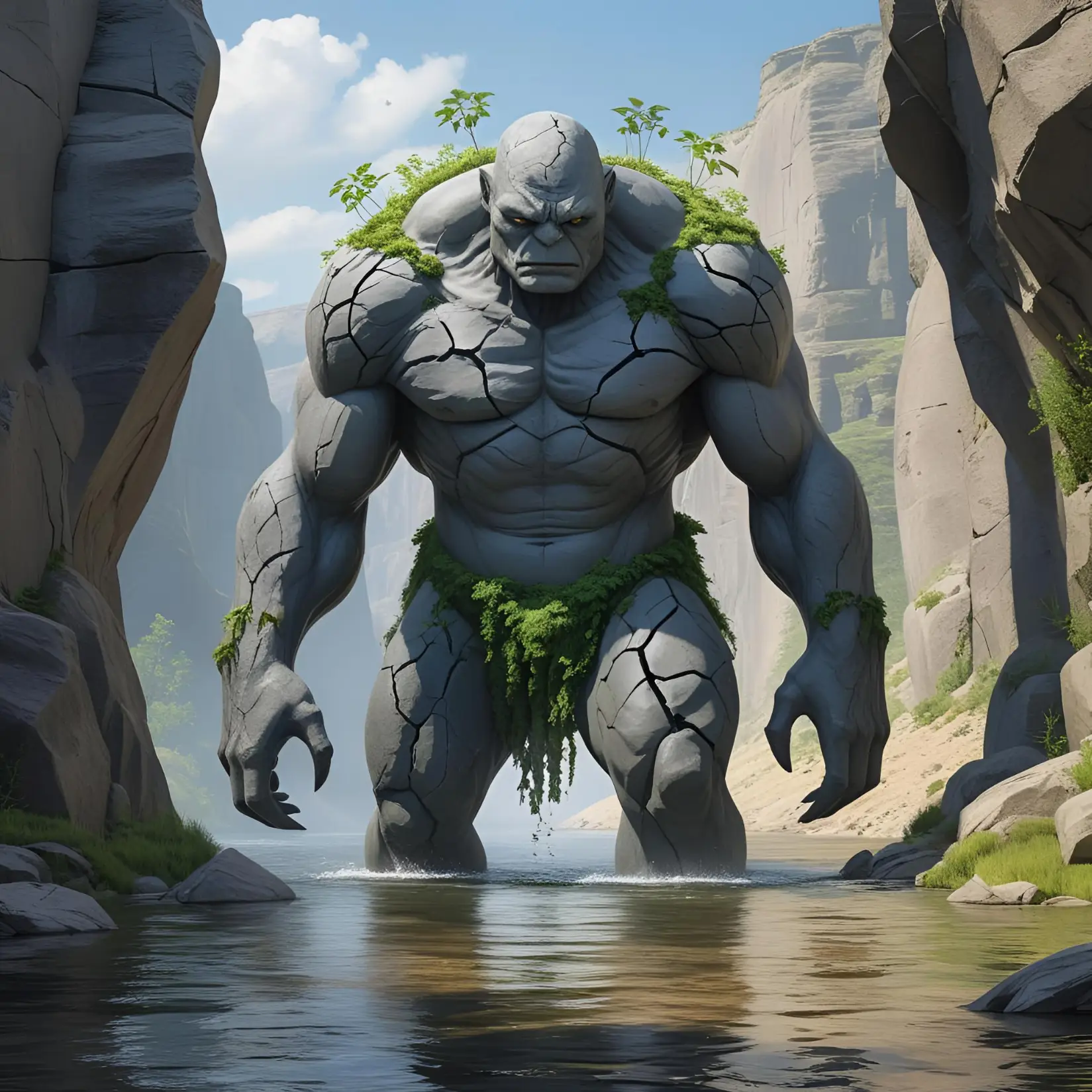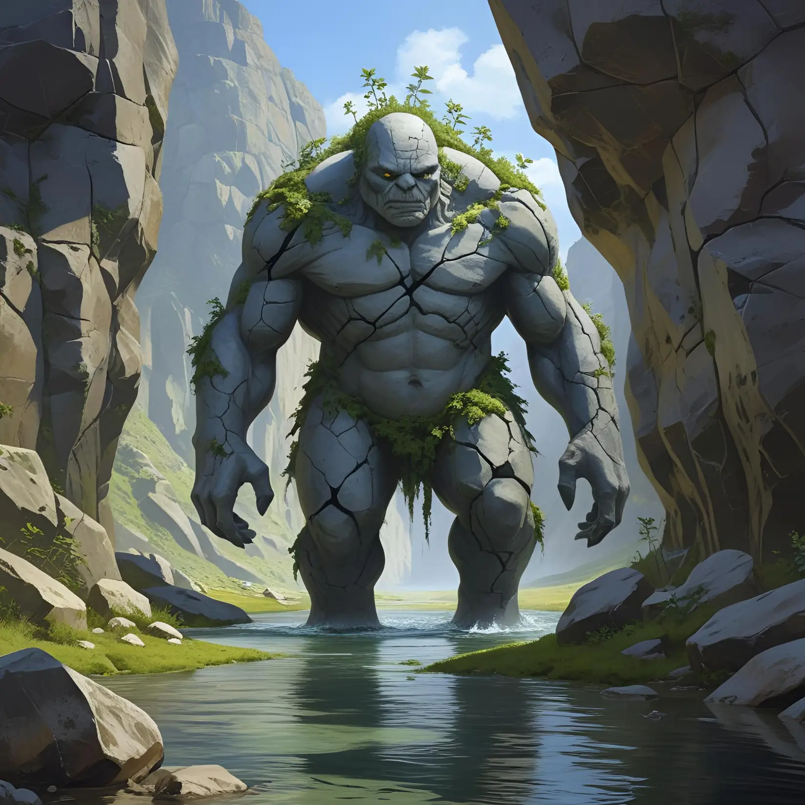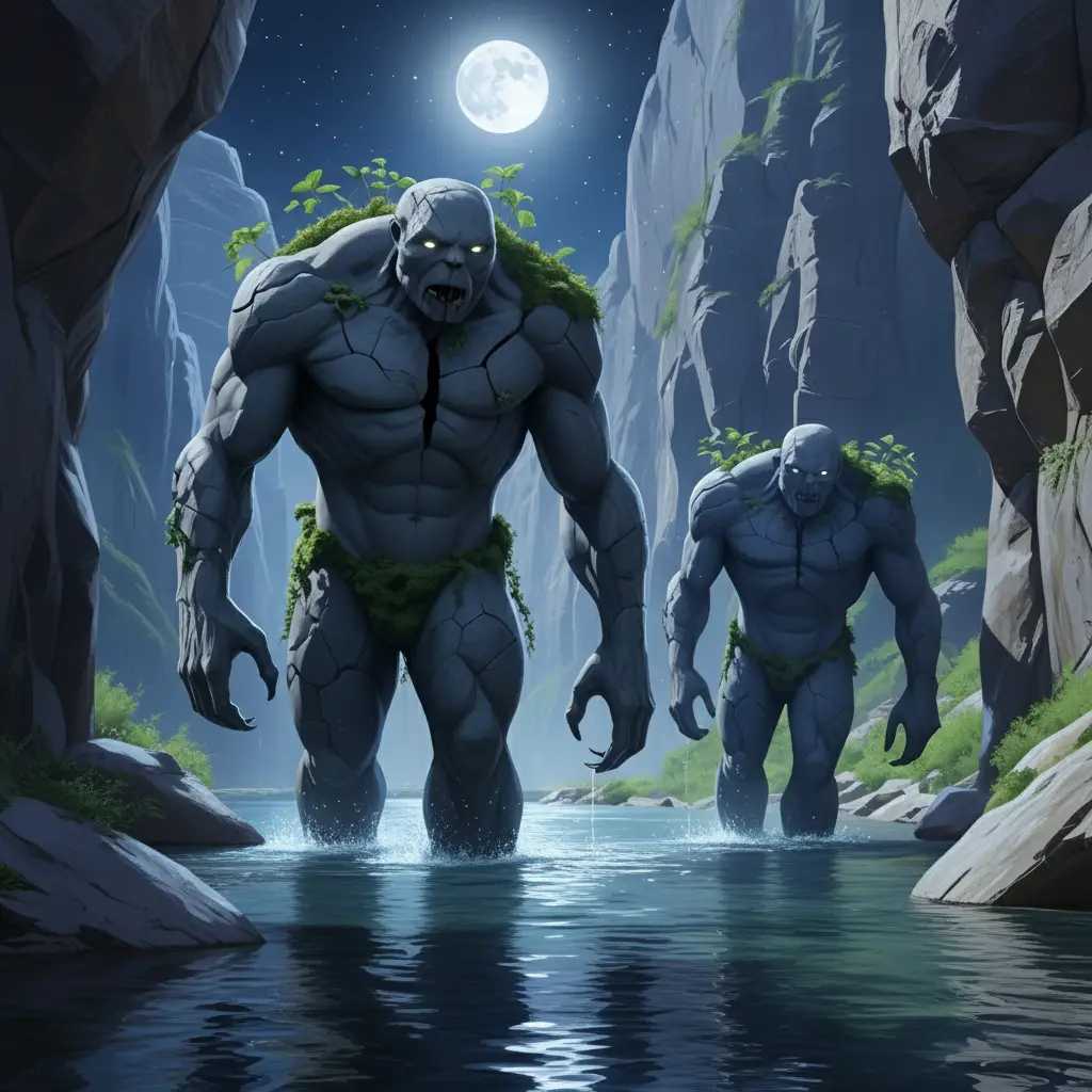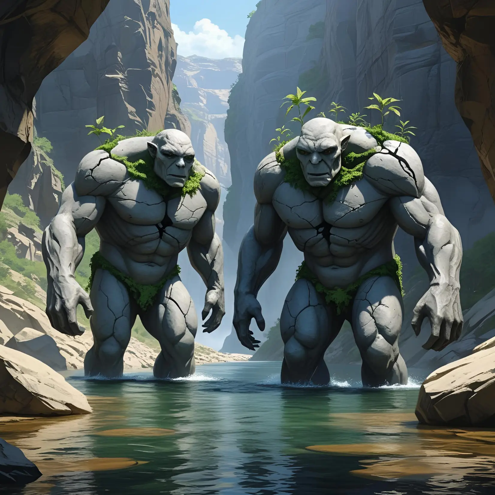 Kaya Adamlar devasa boyutları, taşlaşmış kasları ve doğanın elinden çıkmış gibi görünen formlarıyla Kayalar Kanyonu’nun canlı bir uzantısı gibidir. Duman grisi gövdeleri üzerinde derin çatlaklar uzanır; zaman zaman bu çatlaklardan bitkiler filizlenir. Bitkilerin yeşil tonları onların dinginlik ve doygunluk hâlini yansıtır. Gözleri ince oyuklardan ibarettir; boğuk ve yankılı sesleri, varlıklarını hissettirmek için fazlasıyla yeterlidir.