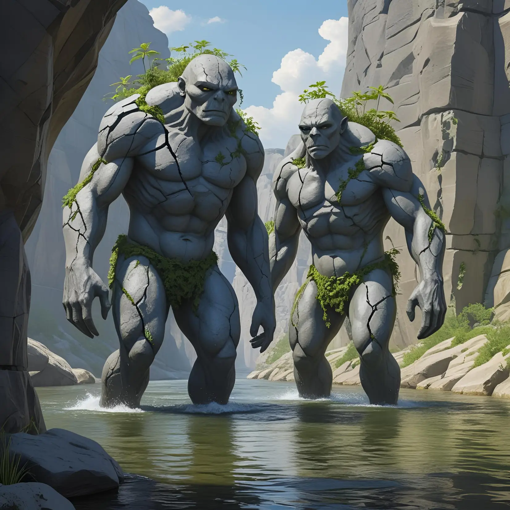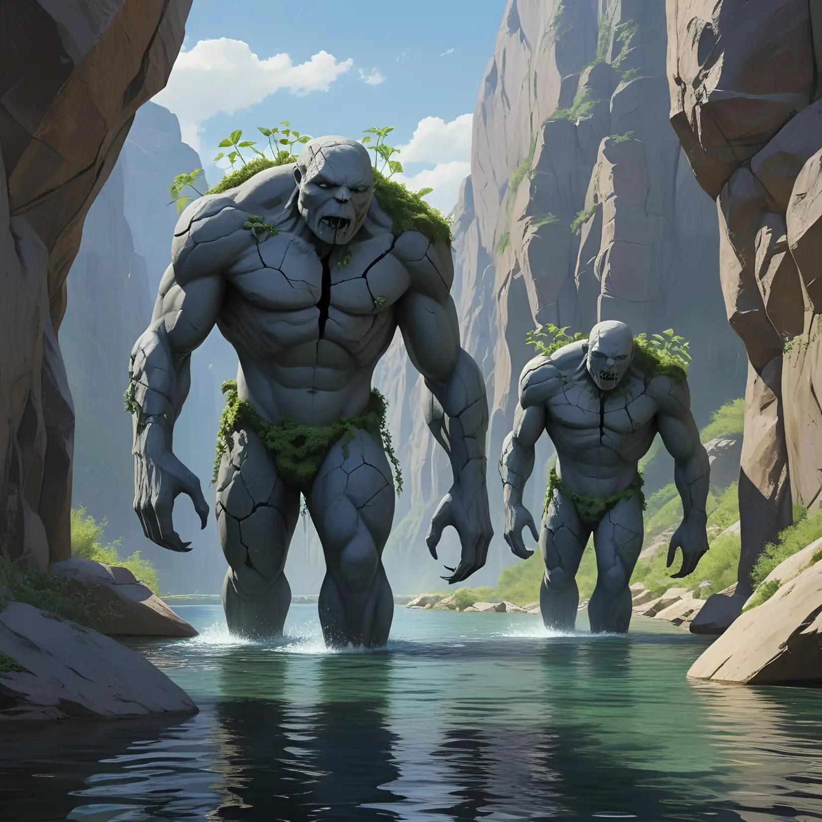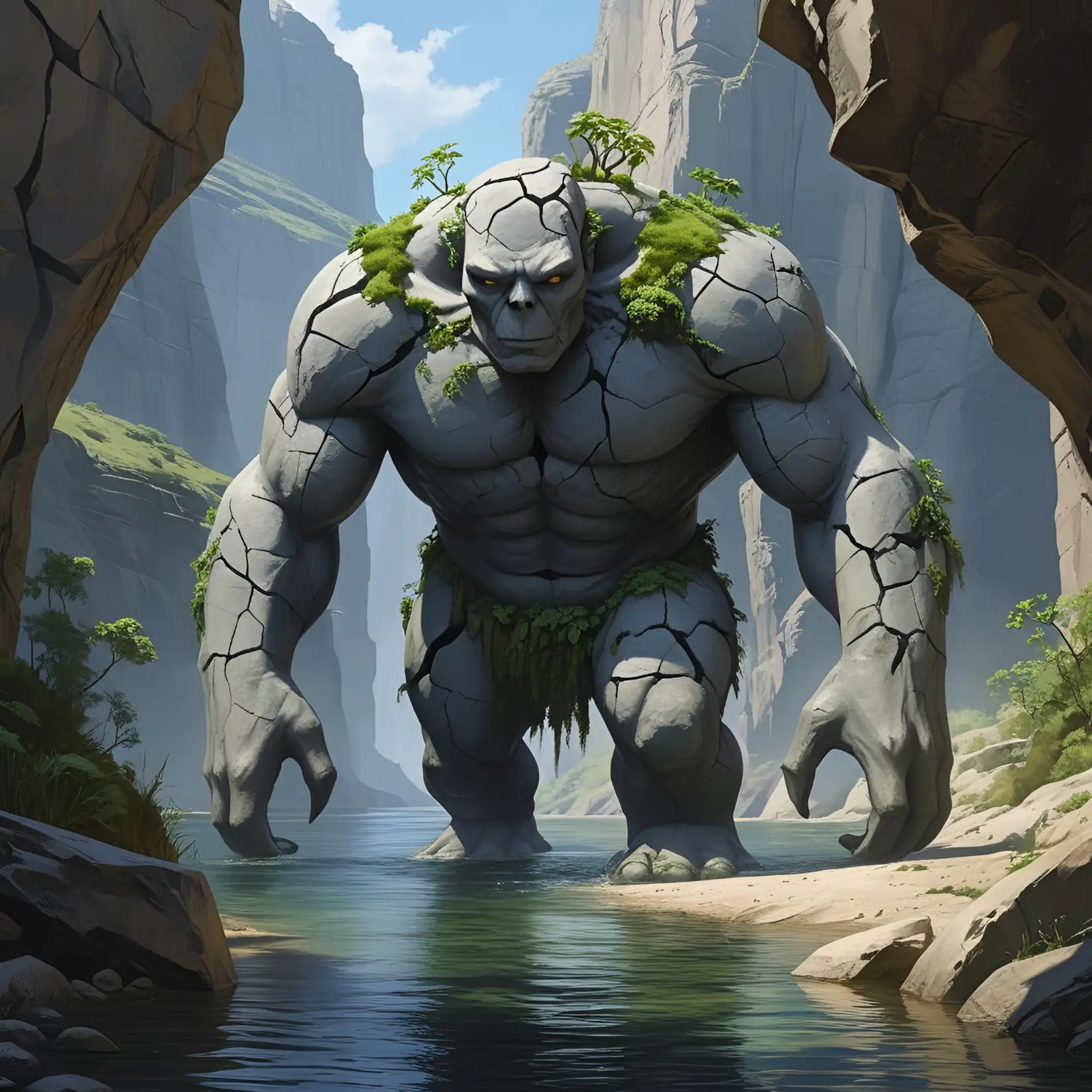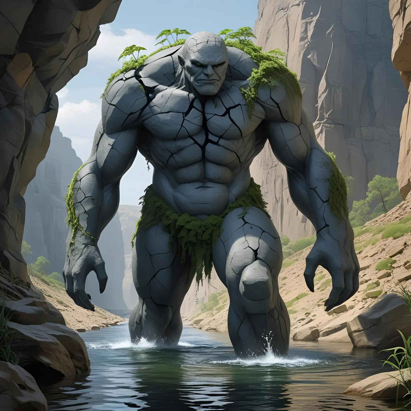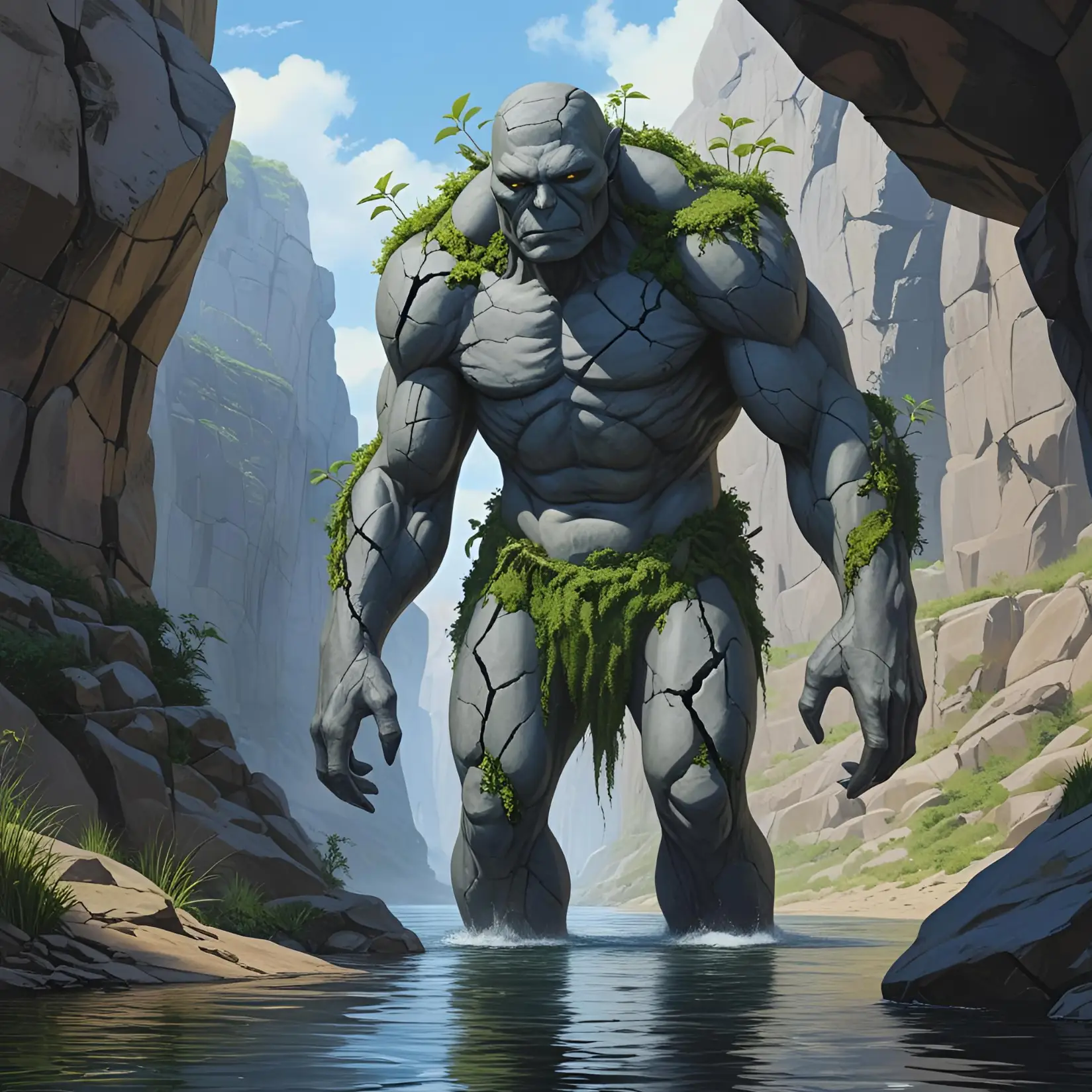 Kaya Adamlar devasa boyutları, taşlaşmış kasları ve doğanın elinden çıkmış gibi görünen formlarıyla Kayalar Kanyonu’nun canlı bir uzantısı gibidir. Duman grisi gövdeleri üzerinde derin çatlaklar uzanır; zaman zaman bu çatlaklardan bitkiler filizlenir. Bitkilerin yeşil tonları onların dinginlik ve doygunluk hâlini yansıtır. Gözleri ince oyuklardan ibarettir; boğuk ve yankılı sesleri, varlıklarını hissettirmek için fazlasıyla yeterlidir.